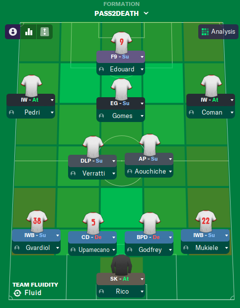 My tactical re-think is an urge to push Aouchiche further forward. Pedri clearly isn’t right for the AML position I had him playing in and the longer I persist with that, the more danger there is of me fucking the season up. So I switch Coman to left wing, Gomes to right wing and Aouchiche to AMC to play the number 10 role. A role I was convinced Gomes would play. Into midfield comes Manuel Locatelli, transfer listed at Real Madrid and available for £14M. He pairs up with Italian mate Verratti and now the team is set. My other deadline day swoop is for 17 year old Bayern keeper Isa Cirisoglu. He’s actually better than Gulacsi already and has enormous high potential. I paid £12M for him but I think that’s a snip. Bayern wanted £22M.