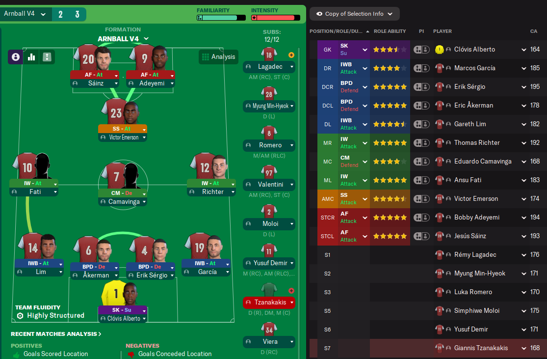 In 2023/24 the club had finished in P13 and barely avoided relegation thanks to a decent streak of late wins. They finished on 47 points. In my first season we leapt up the table to P4, finishing with 69 points (nice). In our second season we finished P3 on 75 points. After signing Man Utd youngster Bobby Adeyemi on loan, our fortunes changed and we stormed the league title in 2027, with 86 points. It began a reign of terror with each season seeing improvement. We ended up with 92, 99, 98 and 109 points respectively. In the 109 points season we only dropped points twice; a 1-1 at Old Trafford and a bizarre 3-0 loss to Arsenal. Every other game was a win, we finished with 161 goals for.