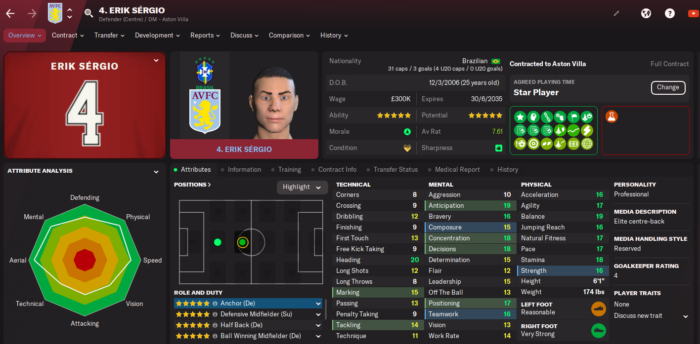 There are only six players in the entire save who have 190+ ability and five of them play for Villa. This is, hands down, the best team I’ve ever constructed on FM at any level. I’m leaving it because I think it’s gotten too easy and last season’s 109-point haul should be evidence of that. As I depart, I leave behind the best team I’ve ever had on FM. Going back to when I was a child. I’ve never had a team this elite.