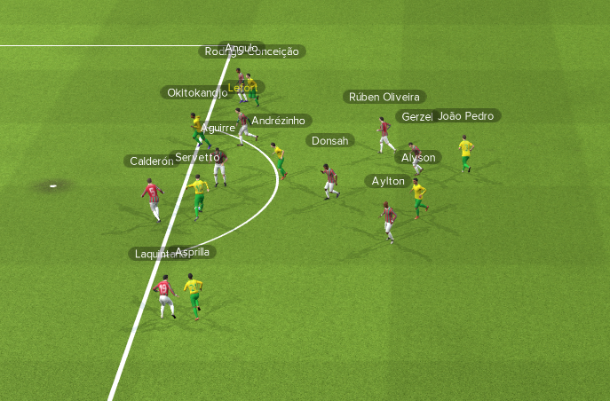 Things are going great. We’re third in the league as we roll into December and then it hits. The dreaded injury crisis. My centre backs have been taking it in turns to get injured all season but December sees a new challenge after both my strikers get injured. Stevy Okitokandjo is out until new year with a twisted ankle. His strike partner, Nic Servetto, does his thigh in training the next day and I only have one other striker. Pedro Lucas comes in. His strike partner? I don’t have a player. All my kids aren’t registered so that’s not an option. I end up leaving the position blank and seeing what the coaches suggest. They come up with an unlikely choice; Joao Pedro, our starting right back.