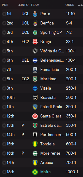 I took Mafra from almost relegated to tier three in Portugal to Europe in 2.5 seasons. Part of me wishes I had decided to stay and try to bust up that Big Three in Portugal.