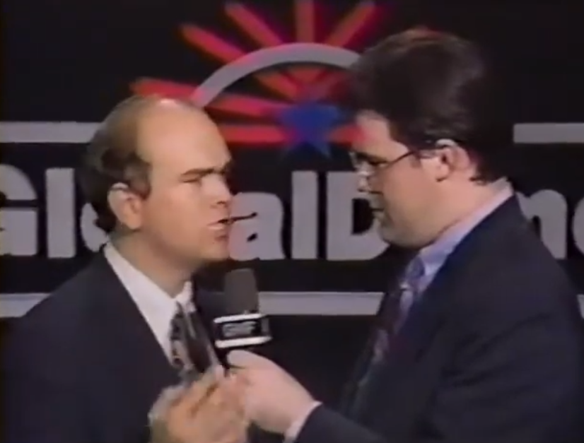 I’ve never seen Global apart from one Jerry Lynn vs. Lightning Kid match on a comp tape. Otherwise, I’ve seen nothing. There’s LOADS of Global on YouTube though so, fuck it, let’s gooooooo. Hosts are Craig Johnson & Scott Hudson. Johnson looks like a corporate RJ City. Hudson looks like he’s going bald. Craig has a bad habit of turning towards Hudson and exposing his profile. Urgh.