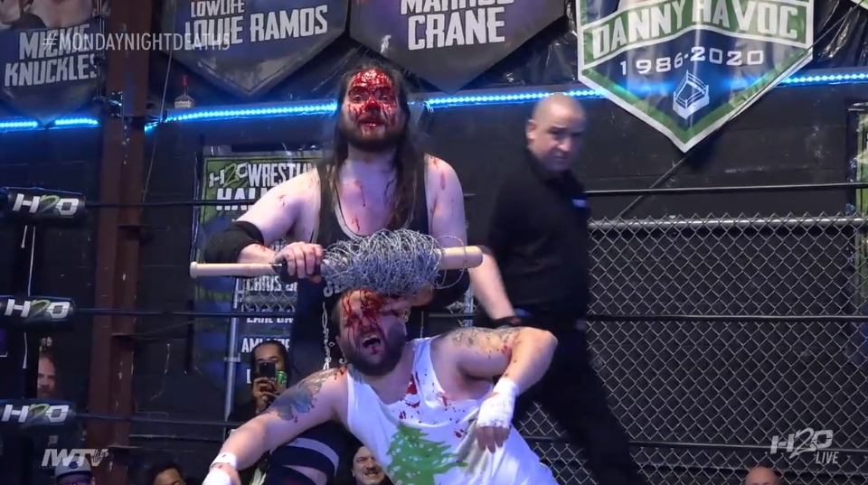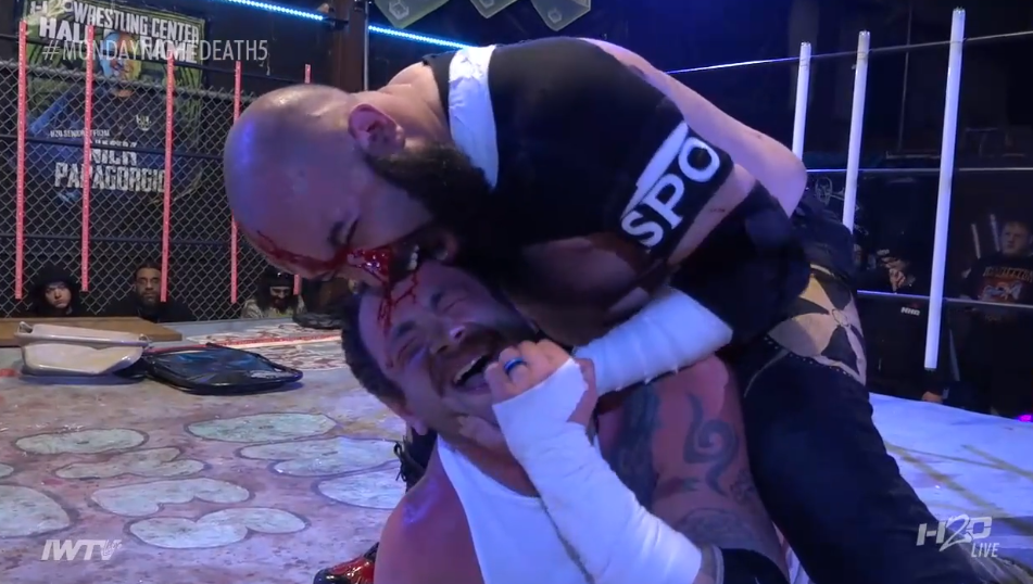 There’s so much blood. They have blood in their eyes and can’t see, which messes up a few spots. A sloppy Pedigree on a shopping trolley finishes for Jimmy Lyon. This was a bloody mess. I appreciate the effort here, but the blood quickly overwhelmed everything, and they could easily have bailed on the silly plunder stuff after it.