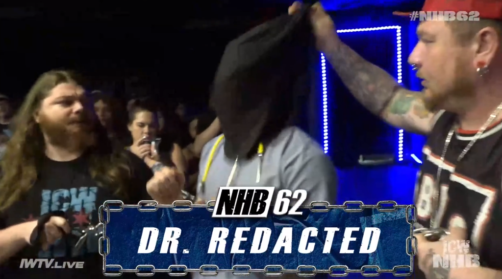 Who is Dr Redacted? Someone who watched Sabu’s ECW entrance or, possibly, Silence of the Lambs. I think it’s more likely Sabu. As with Mania weekend, we get a LOT of light tubes being smashed. How many tubes does this company go through? Jesus fucking christ. There’s a cloud of “spooky dust”. This is the kind of promotion where you go home with a lung full of broken glass and your clothes splattered with wrestler’s blood.