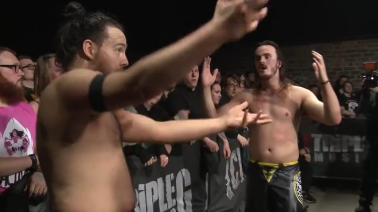 Post Match: Kenny Williams turns up to complain about this. This leads to Mark Coffey jumping the new champions, wearing black and sporting a beard. I’m glad there is a distinction between guys there.