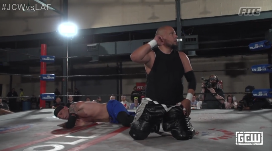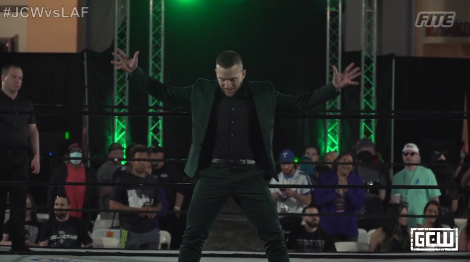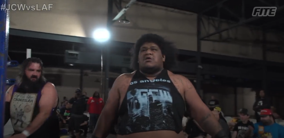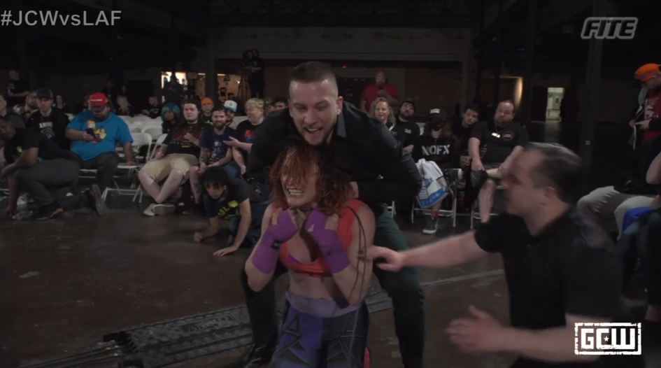 The match slowly gets good with Sheik playing a good babyface with plucky offence and gutsy comebacks. Mason makes for a decent heel, at one point using a plastic bag to try and murder his opponent. I guess murder is evil. He tries to lynch her from the rafters, which is one hell of a finish but LA Fights entire roster jumps in there and kills him. JCW’s roster, also out here, and are like “yeah, that’s probably fair”. Sheik wins with a pumphandle driver and that’s your main event. Some very cool ideas at play here and Mason is an intriguing character that needs a bit of polish. **¾