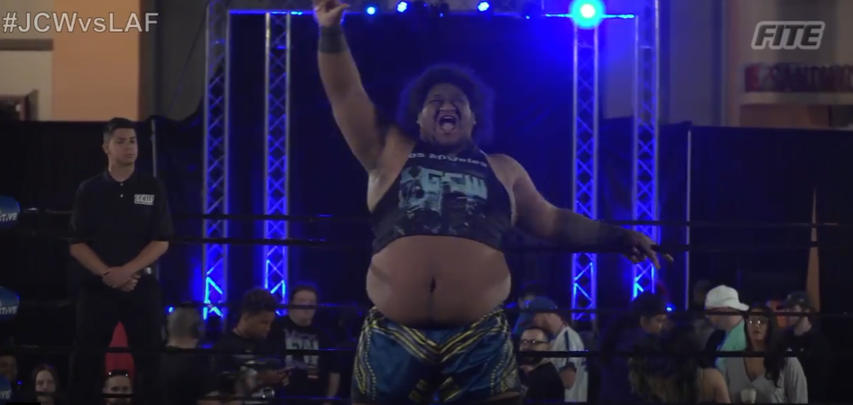 He debuted at the start of the pandemic, so I’ve never seen him. I was really hoping Big Vin was like 5’ 2” or something but he’s a hoss. There’s serious beef in the ring. Juicy’s wobbly stomach is hypnotic. Like Homer Simpson getting his fat checked.