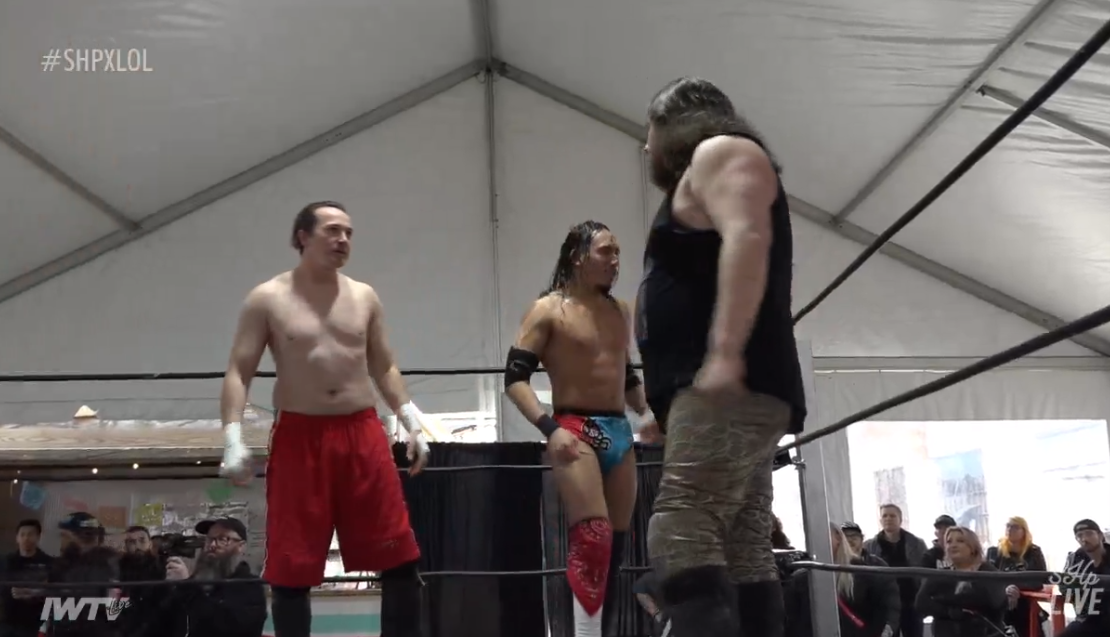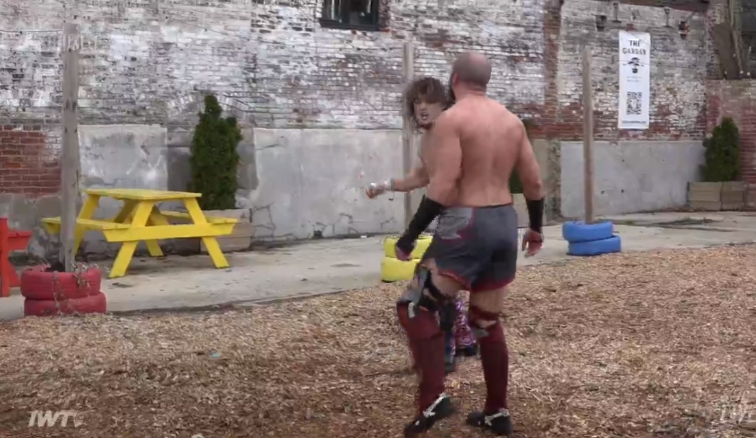 I like that they fight outside the crowd decide not to follow because it’s cold. To be fair, they can see through the panels. Everything in this is good. The brawling, the striking, the mat counters, the rope work. MAO pulls out a win with a German suplex. I could have watched this for ages. A low-key banger. ***½