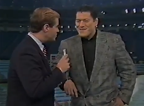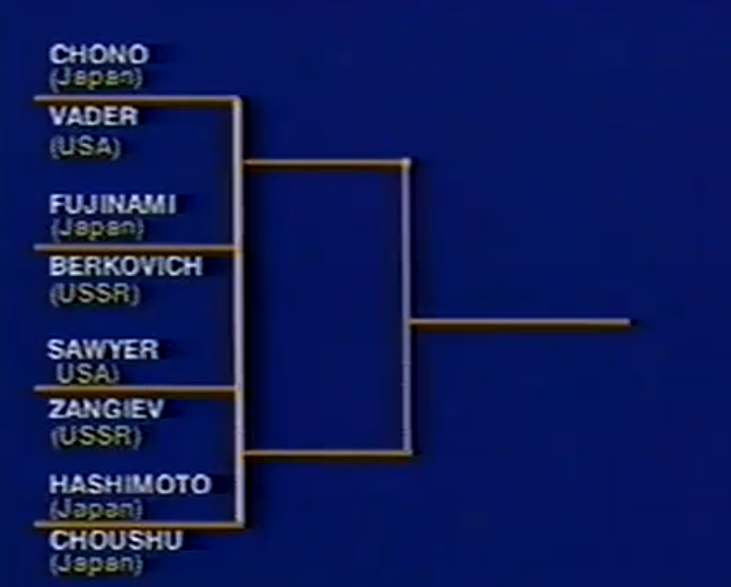 We’re in Tokyo, Japan at the Tokyo Dome. 53,600 in attendance as New Japan flexes its muscles on a grand scale. The IWGP title is vacant, for the third time since its debut in 1987. Inoki and Fuijnami (twice) have forfeited the belt. No one has ever lost the title. Eight men line up here for the vacant belt but Inoki isn’t competing. No, Inoki is main eventing the show, defending his WWF Martial Arts title against Shota Chochisvili. If your immediate reaction is “whomst?” you are not alone. This is from a period in history where Antonio Inoki got very obsessed with Soviet wrestlers. It was an experience!