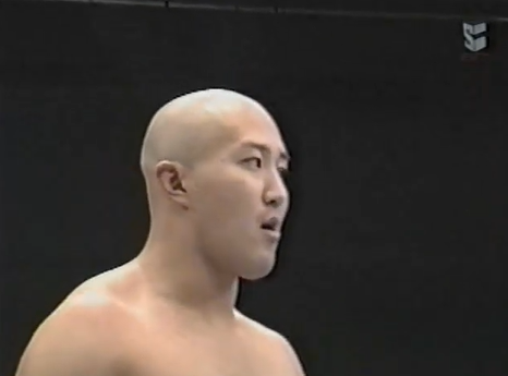 Heat is Minoru Tanaka with a crap mask. Goto is about a quarter step above young boy here. He is completely unrecogniseable. This is much closer to being a good contest than the last two matches. Goto goes after Heat’s arm and it takes Heat stepping it up for the tide to turn. Heat continually goes after the taped left leg and taps Goto out in seven minutes. Tidy.