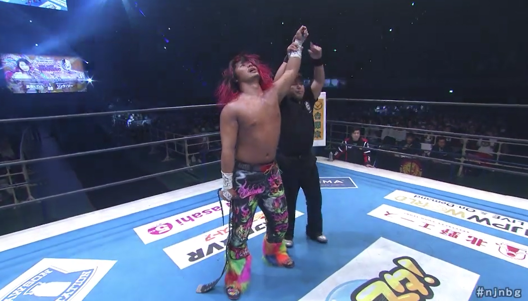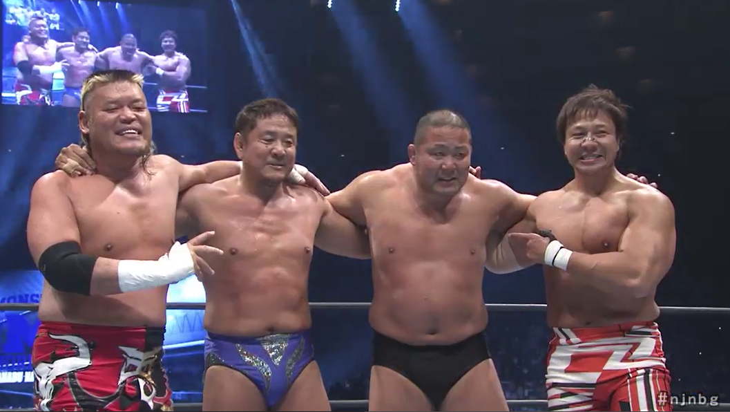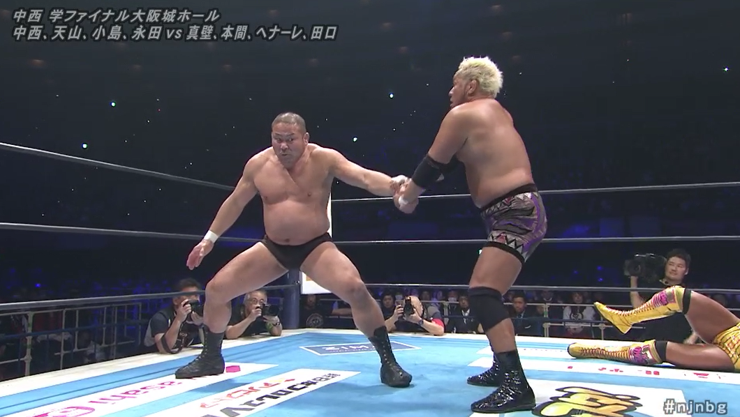There’s a lot of ‘greatest hits’ business going on. Not just from Nakanishi but also the rest of the veteran’s team. A fun little contest culminates in Kojima hitting a lariat on poor Honma. I know I’ve spent most of his recent career mocking Nakanishi for being old, immobile and needing to retire but he will be missed. Maybe Mascara Don can carry on his legend every January.