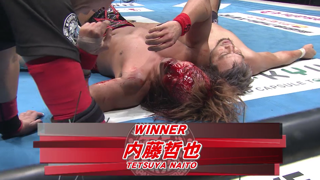 The match rapidly goes home with Naito bleeding a gusher and Destino finishes.