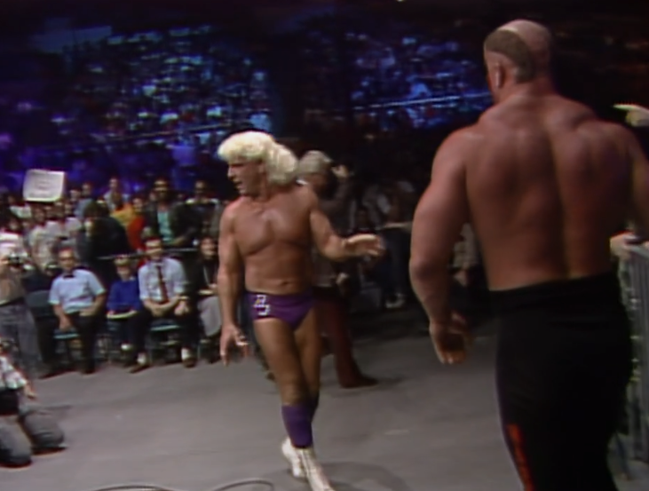 Caudle also suggests it would be a “remarkable feat” for Dusty to book himself to win three Bunkhouse Stampede’s in a row. It would be remarkable alright. Luger still looks green here, which is worrying three years in, but he’d work Flair later in 1988 and get much better. He’s been booted out of the Horsemen and has natural enemies in Arn and Tully.