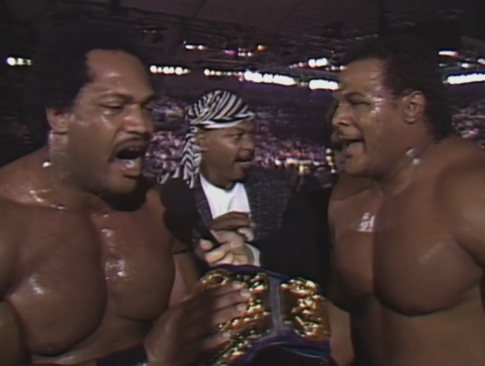 Even when Scott gets picked off for heat, he’s still throwing them both around. Frankensteiner leads to the hot tag and Doom continue to get their asses kicked. Doom pick off Rick and double team him behind the ref’s back to steal the win and the belts. The crowd is SHOCKED. I liked this match a lot but there’s a feeling Doom didn’t do much here and Butch Reed must be surprised he’s got that belt. Steiners worked super hard, as always, and we’ll call this ***¼