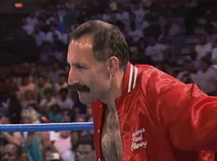 Video Control gives as Tony as he chats with the Junkyard Dog. It’s about a year since he walked out on WCW over pay issues, no showing the Wrestlewar 89 PPV. Having seen him wrestle in 1989, I’m shocked WCW decided to give him another shot. He’s going to be here for ANOTHER FOUR YEARS. This is one of Ole Anderson’s first big calls as booker. Bringing back a guy who he knew was good for business…10 years ago. Anyone with eyes could see Ritter was washed in 1990 and Ole sets his stall out to make stupid mistakes right away here. They put him in with Ric Flair. RIC FLAIR. At least he gets a laugh in his promo here. When Jim Cornette barges in and asks where he’s been the last year JYD reels off an address and Cornette pauses…”that’s my mother’s house!” Great stuff.
