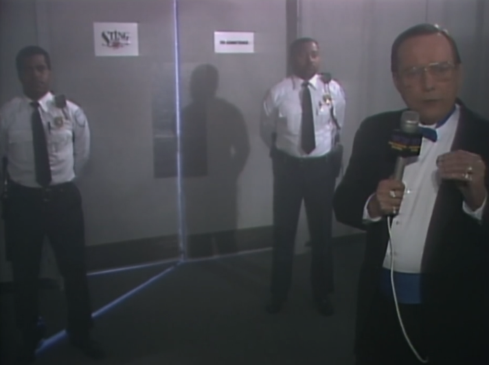 We head backstage where Gordon Solie is outside the dressing room of Sting and ROBOCOP. Does Robocop get dressed? And why is Sting sharing a room with him? Look, I’ve seen Robocop and, in my head, he’s out there gunning down the Four Horsemen with that big ass handgun of his.