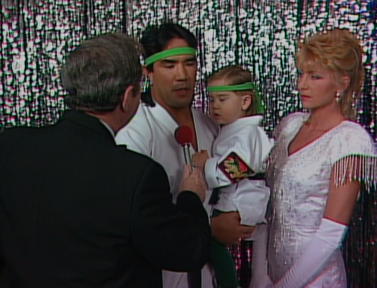 Video Control takes us backstage where Ricky Steamboat, and family, are wearing babyface white. Little Dragon wants the microphone and can’t understand why Bob Caudle won’t let him eat that fucking thing.