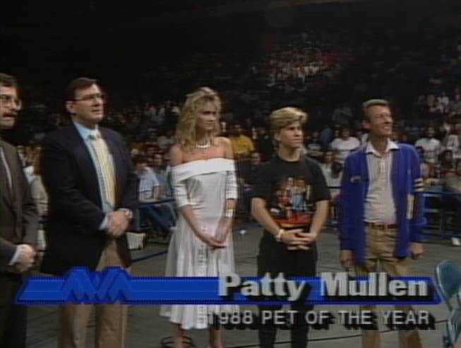 Which include Wonder Years co-star Jason Hervey (get used to that name in WCW), Leave it to Beaver actor Ken Osmond (aka Eddie Haskell) and Penthouse pet of the year Patty Mullen. What are these people’s qualifications for judging a wrestling match? Who did Patty Mullen ever beat? Gary Juster and Sandy Scott, who work for the NWA, make more sense.