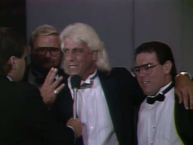 They gave them short thrift here. It was the shortest match on the show and the only one I would have enjoyed seeing more of. The non-finish is particularly painful as it just reinforced the feeling that this show just existed to set up other stuff. However, I am going *** because I love Arn & Tully and their dynamic with the plucky babyface Sting and the mega over babyface Dusty did work.