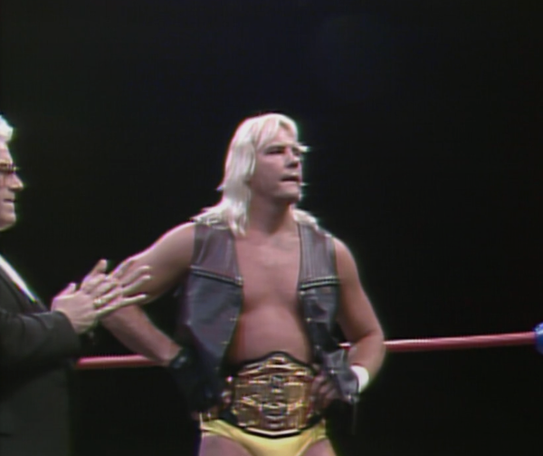 Doc joins commentary and jesus wept, he’s awful. At least he’s not as bad as in promos but even so, he stinks. The match lacks all the heat they had in building to it. It’s painfully sluggish and the focus seems almost entirely on Kevin Sullivan trying to entice Precious, who has the key to his cage, over to him. Because no one is watching, the Varsity Club just dog the match. The only person who gives a shit is Ronnie Garvin, former NWA champion. He plays Garvin in peril and delivers some patented overhand chops. Otherwise, this is a total pass. The production crew even miss the finish because they’re watching Sullivan and Precious. Jimmy Garvin nicks it with a roll up.