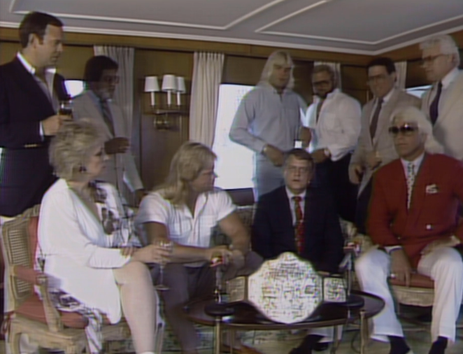From there we go to the Blackhawk (a boat belonging to a Chicago sports team, I forget which) for the contract signing between Ric Flair and Lex Luger for the NWA title match in July. Tony, not for the last time, calls it the “biggest contract signing in history”. Don’t get too excited for this one, their great match is later in the year.