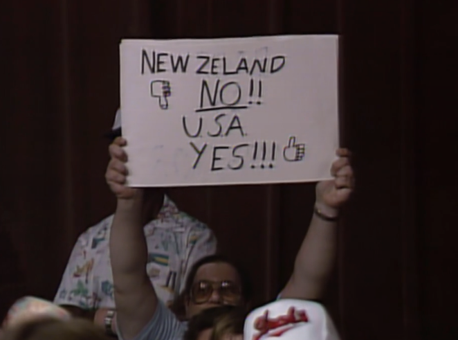 Haha. I don’t even know where New Zeland is! Take that, Flight of the Concords. Most of my complaints about this match would apply to every Bush-herders contest. The offence is comical. The selling is subpar. The bumps look wrong. Here, Luke takes bad bumps to a new level by failing to understand the mechanics of a crucifix. Poor Tommy Rogers ends up falling off him and Luke takes the bump flatback, like an asshole.