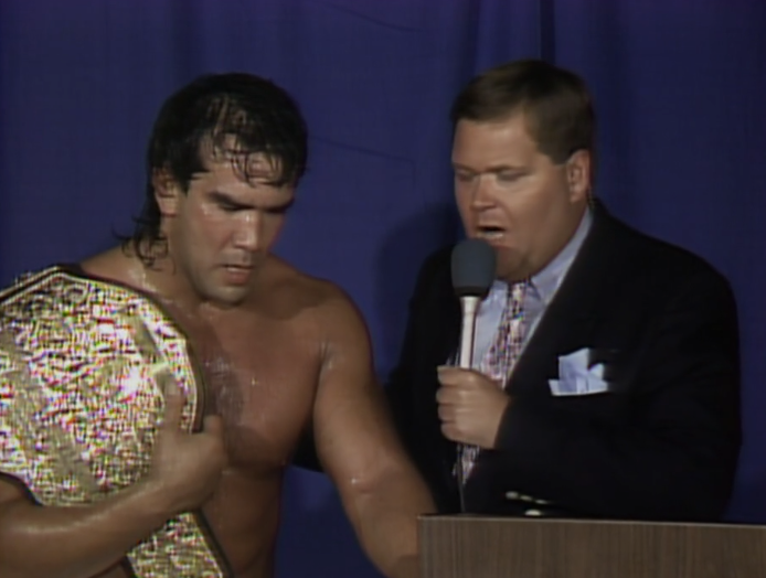 *He actually got fired just after this, for no-showing Wrestlewar ‘89 PPV, but came back.