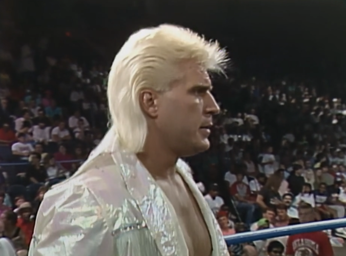 The Freebirds turn up covered in glitter and not taking this seriously. The crowd chant homophobic slurs at him. Ah, the 90s. There will be a lot of this. It’s amazing how much the culture around wrestling has changed since 1990. Rick Steiner could almost be forgiven for not understanding how times had changed during his time in the sport. Almost. I’ve been around that long too, Rick, and you have accept change. Or just don’t be an asshole.