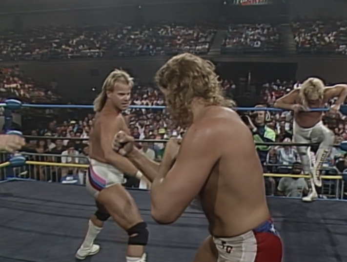 Rock n Roll Express won’t wrestle again during this run in WCW. Robert Gibson got hurt a few months after this and Morton ended up in singles and turned heel. 1991 is a weird place, guys, it doesn’t always make sense.