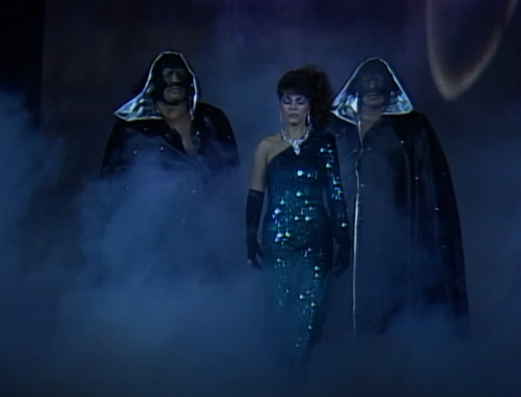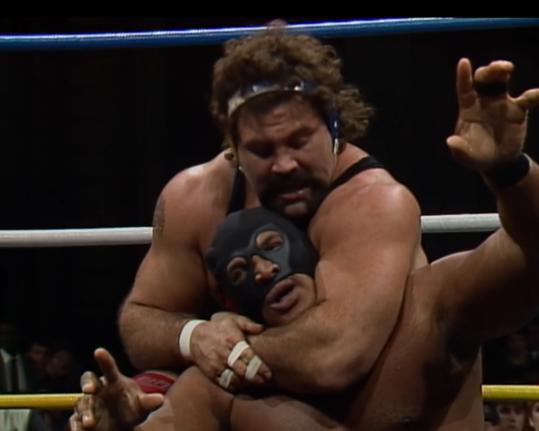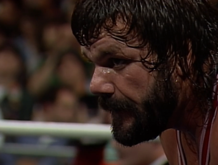 What is Thunderdome, I hear you ask? Two men enter, one man leaves. It’s a fight to the death. A place where Mel Gibson takes on a midget mounted on a muscle monster. Oh, the wrestling match? It’s a cage match. There’s no pins or anything. You have a “designated Terminator (!!!)” who throws the towel in. It’s Gary Hart for the heels and Ole Anderson for the ‘Horsemen’. The referee, watching out for towels, is Bruno Sammartino. JR gets to regale us with Bruno knowledge. Did you know he won the world title in 1963 and held it until 1971? Almost unthinkable in modern times.