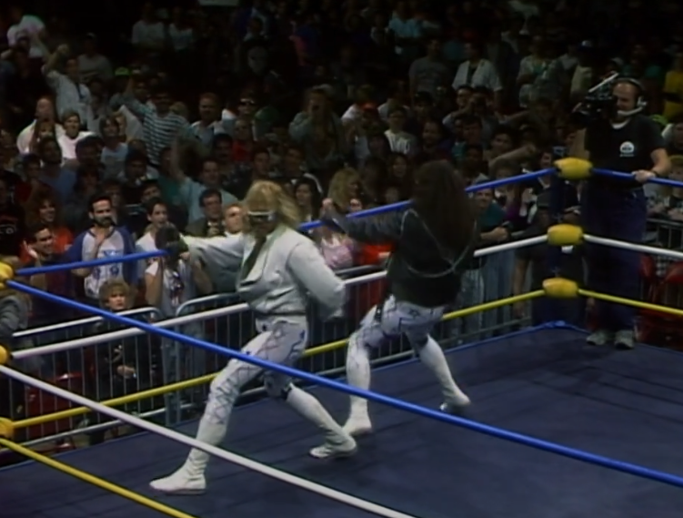 The big take home is that both guys were good here and had their supporters. 1989 felt like a big turning point in pro-wrestling from the old timey heel-face structure and ‘heat’ to fans cheering for who they wanted*. The style changed too and became more aerial and exciting. Pillman misses with some high risk and Luger drops him with the Hot Shot to retain. This was really good. A nicely put together match that helped Pillman get over for hanging with a star like Luger. ***¼