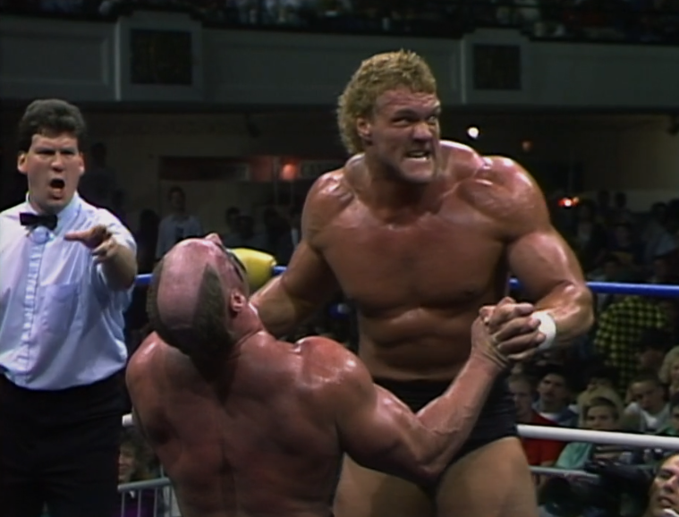 This feud was originally Luger vs. Steamboat, but Ricky quit over pay, which is a prime example of WCW being dumb for letting him go after his 1989 run. Pillman is the replacement. If only the Luger-Steamboat feud had paid off here. It could have been special. Luger’s peak as a wrestler was 1988-1991. He’d grown into the business and was good at telling basic storylines. Then he got lazy and has a horrible reputation, which is deserved. Watch him in his in this ‘peak era’ though and you might be surprised.