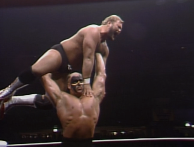 For anyone getting excited about this match, don’t. Doc didn’t get good until his AJPW run, which doesn’t start until 1990. Windham had very little chemistry with him and, for whatever reason, couldn’t turn those great Flair matches into anything else. Both guys are babyfaces and Barry gets booed for refusing to fight on the floor. Just fucking punch him, read the room! They do a leapfrog and Barry runs right into Doc’s balls. Was that deliberate? I assume so, as Windham barely ducked. Barry, babyface hero, refuses to follow up. 1987 and the crowd are begging for an anti-hero. Steve Austin was ten years late.