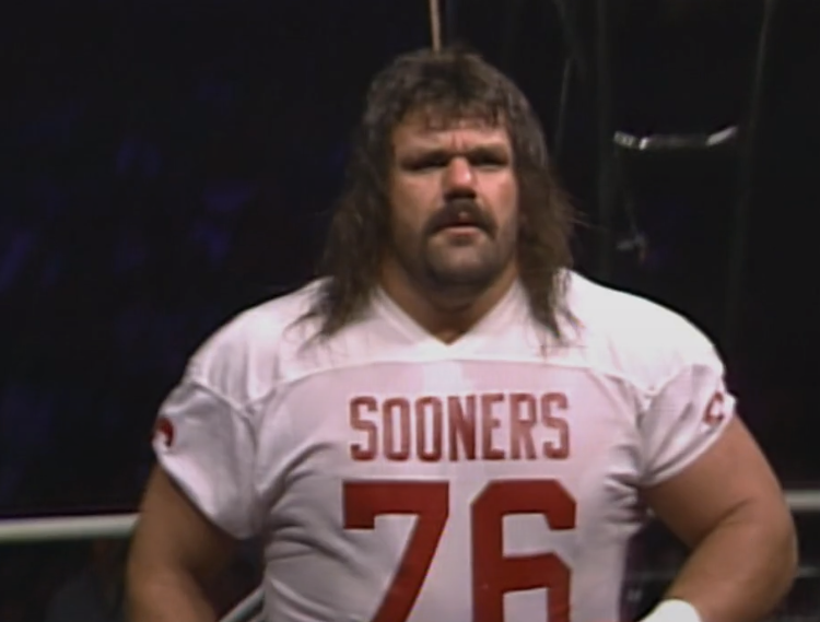 Backstage we get Bob Caudle interviewing Jimmy Garvin and Michael Hayes. Garvin doesn’t stop talking the entire interview. Caudle moves on to Steve Williams. He calls himself a wrestling machine who goes “110-210%”. What maths is that?