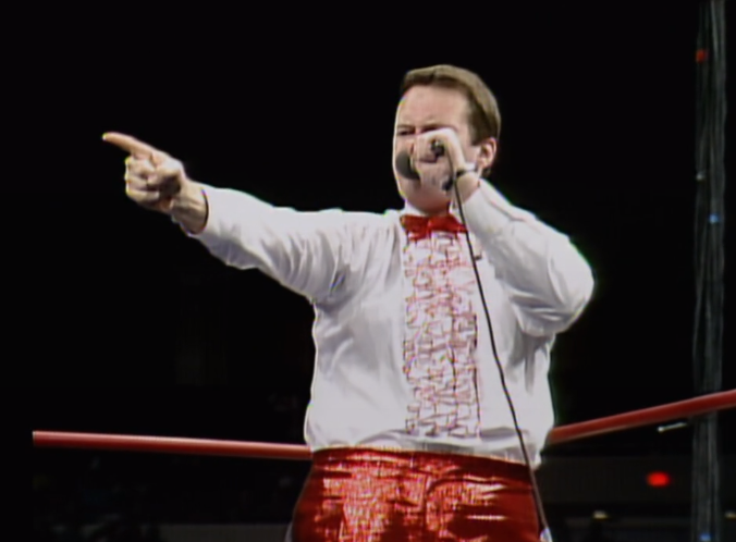 This is an odd angle, where Dennis Condrey and Randy Rose teamed up as the “Original” MXP. Condrey and Rose, along with Norvell Austin, had been the original MXP going way back to 1980. Although this happened in Memphis, rather than the NWA, where Condrey wrestled in singles. It wasn’t until Bill Watts secured the services of Condrey and Bobby Eaton that the more famous Midnight Express was born. Condrey then left and was replaced by Stan Lane, giving us the version of MXP we see here. Condrey has returned with Rose in tow, and we have a feud. Babyface MXP with babyface Jim Cornette is SO weird. The “originals” are managed by Paul E. Dangerously aka Paul Heyman.