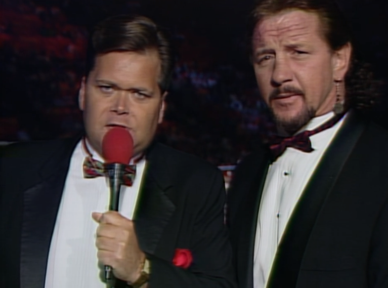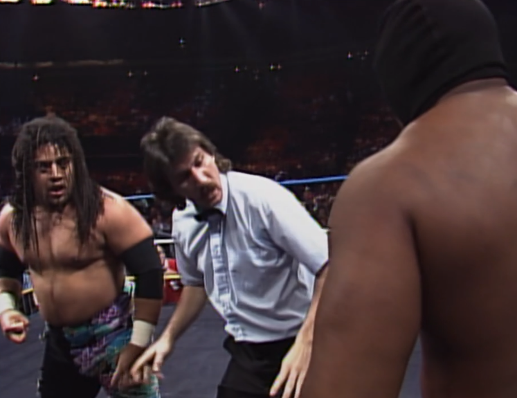 Jim Ross, pro-wrestling journalist, still can’t identify either of Doom despite having called a lot of Butch Reed matches and being very aware of Ron Simmons collegiate career. Cornette calls the format “innovative”. Oh, Jim, was this one of yours? It’s a honker mate. It honks.