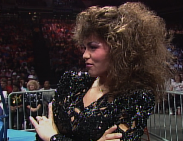 WCW’s crack camera team manages to shoot Woman right into the lights, so you get lens flare. Fuck off, JJ Abrams. The shots of the crowd don’t help as there are empty seats everywhere. Right in front of hard cam. It’s like being at the AWA.