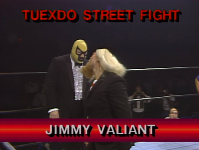 Jimmy Valiant’s gimmick is being Jimmy Valiant but it’s close to crazy homeless guy.
