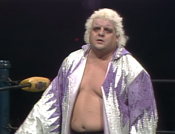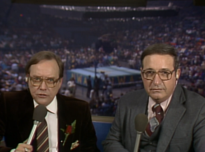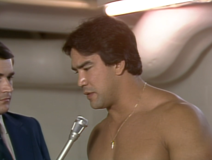 Backstage: Ricky Steamboat gets interviewed about how he’s been assaulted by Tully Blanchard over the past weeks. Black Bart nailed him in the spine with a boot a few days ago and he’s struggling. The original version of the show had a huge technical issue here where the lights went out during this promo, and they had to go back to ringside. That’s been clipped off by WWE sadly. You’d think they’d want to make fun of Jim Crockett.