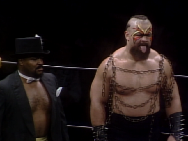 Jesus, no wonder Rude jumped to the WWF. The biggest show of the year and Rude, one of the territories highest potential heels, is in with Wahoo. It feels like Wahoo does this same match with everyone. This might be the last time we see Wahoo in JCP as he joined AWA in 1987 and stayed there for four years. The Injun gimmicks of the 1970s were dying a death in the late 80s. Cowboys and Indians was just ceasing to be part of the national identity in the 80s. Both guys bleed here and Rude does a lot of overblown selling. To be fair to Rude, he tries hard to get this over, but the match structure limits him. Paul Jones tries to jump on the apron but Wahoo chops him off and Rude attacks from behind to send Wahoo into the winning fourth buckle. Meh. Bleeding and goofy finishes, the Wahoo McDaniel 1986 Story.
