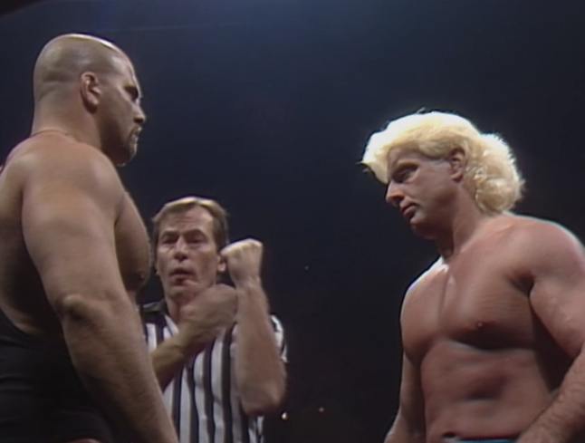 I love this picture. Koloff is all steely eyed and determined to not like Flair psyche him out. Flair looks borderline bored. He’s very relaxed and expects to have no issues defending now he’s dodged that TA bullet. The storyline starts there and becomes Koloff’s power versus Flair’s cunning. This is really the start of Flair Formula, where he’d just plug the dude into his match and it’d be great. Prior to this everything felt more collaborative, but Koloff just doesn’t have the experience to do anything beyond follow Ric’s lead.