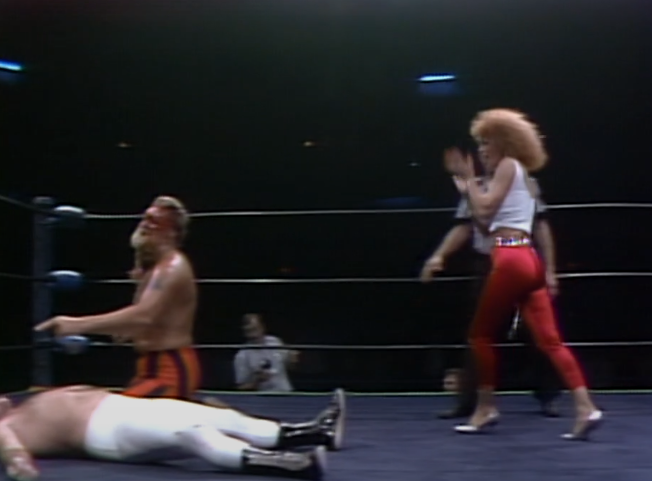 “Way to go, Big Mama” yells someone at ringside. Yes, friend! The theatre of the hair match was in evidence here. Jones embarrassed, Valiant busted open and left lying, Big Mama bringing the acting. It’s all good.