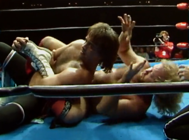 Eaton takes a couple of huge bumps out on the floor to get the match over. Dennis Condrey is content to just follow. I’m perhaps selling Condrey short as he does a fine job of taking the shine and selling his leg. The match is a prime example that you don’t need to rigidly follow formula, as the RNR have a huge chunk of the match and it’s brilliantly paced. Gibson plays Ricky Morton. I’m starting to think all of the early RNR matches had Gibson taking heat. While Condrey’s offence is a bunch of chinlocks, which contribute to this being a less good match, Eaton is electric.