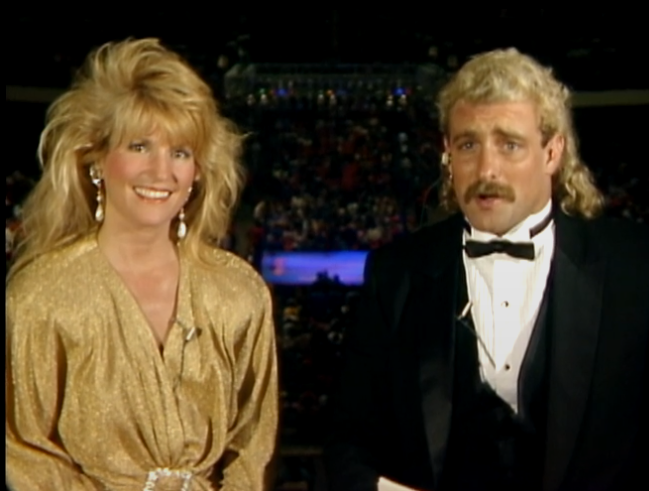 Magnum gets to his latest interview; the boss, Jim Crockett Jr. The Great American Bash and the Bunkhouse Stampede get a shout-out. For 1986, the Crockett Cup will be introduced. Named after Jim Crockett Senior. We get Bob Johnson from the Superdome to tell us why this prestigious event should take place at the Superdome. Just say it’s going to be at the Superdome? We switch back to Tony who interviews Gaylord Perry, former San Francisco Giants (among others) pitcher. He looks ancient but only retired in 1983. Perry died of COVID in 2022.