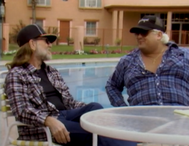 So yeah, Willie is out here bemoaning the decline of Westerns in the 80s and Dusty is all “yeah, daddy, like Bonanza”. He’s literally remaking a John Ford film, I imagine he’s aiming a little higher than Bonanza. This whole thing is a marked contrast to the way WWF used celebrities to make the product seem bigger, while this is just Dusty having a chat with Willie Nelson. Willie waxing lyrical about life and quoting his own songs.