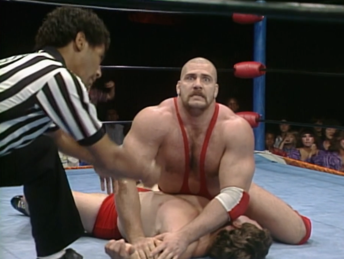 Jeffers would go on to be in the MOD Squad in WCW as “Basher”. Koloff makes mincemeat out of him and Koloff has a certain Goldberg-esque charm. The intensity and power is all there but at a strong pace too. He throws Jeffers around for a few minutes and finishes with the Russian Sickle.