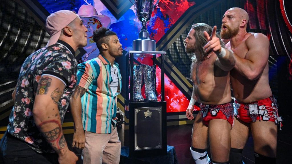 Grizzled Young Veterans vs MSK will be the Dusty Rhodes Tag Team Classic Final. The trash-talk with MSK on either side of the trophy didn’t come to violence.
