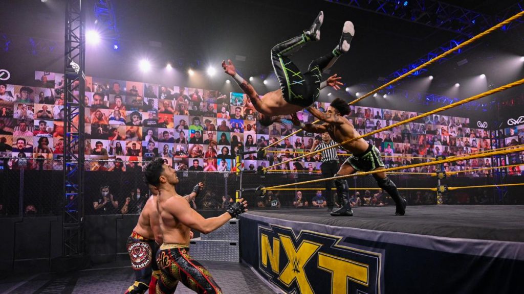 Hell of a match to get the TakeOver go-home underway. Fast action, fast tags, and double teams galore with bodies flying around all over the place. MSK are trying to hit NXT with a hot streak, and Legado del Fantasma are trying to prove Santos Escobar right that it is their time.