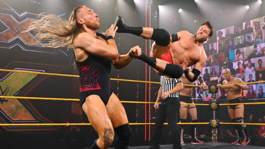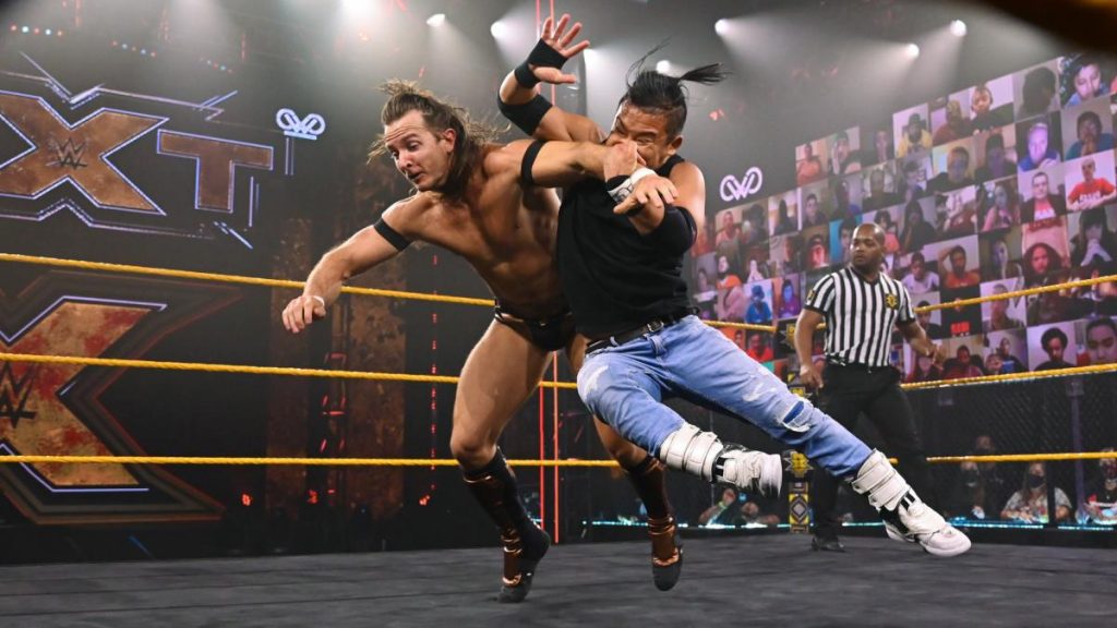 Kyle O’Reilly is kicking off tonight’s NXT which, considering the end of NXT TakeOver Vengeance Day, is hardly a surprise. If you’re not up to date on the antics of Vengeance Day you can read the full review here, but the relevant bit here is that after Finn Balor beat Pete Dunne, he was beaten down three on one by Dunne with Danny Burch and Oney Lorcan. Undisputed ERA, led by Kyle O’Reilly, ran down to help him out. Balor lined up with them once they’d cleared the ring, then Adam Cole superkicked Balor in the face. O’Reilly asked Cole what the hell he was doing, so Cole kicked him in the face too. Roderick Strong was left to decide where his loyalties lie. That’s it, you’re all caught up.