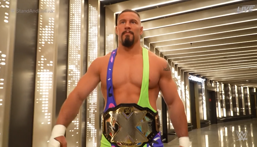 I had forgotten how much Gargano slaps his thigh. I hate it. Gargano gets planted in the jaw with a knee. Booker asks to see it again and they replay it from an angle where you can’t see anything. This company has been making television for like 70 years and still can’t do it properly. Waller grabs various plunder and hits Gargano with it. Sometimes right in front of Johnny’s wife and infant son. “Don’t let the baby see this” says Booker. That baby won’t remember this. Unless WWE sign him and force him to watch it. I thought they were going for “symbolism” but instead Candace just waffles Waller with a Singapore cane. I like that. Like most Gargano matches it’s too long. It reaches a peak and then carries for ages afterwards. At least the second peak is the actual finish here. Gargano waffles Waller with a couple of chairs, like a maniac, and taps Waller out with the Gargano Escape. Keep Gargano under 20 minutes and he’s pretty consistently great. ***½